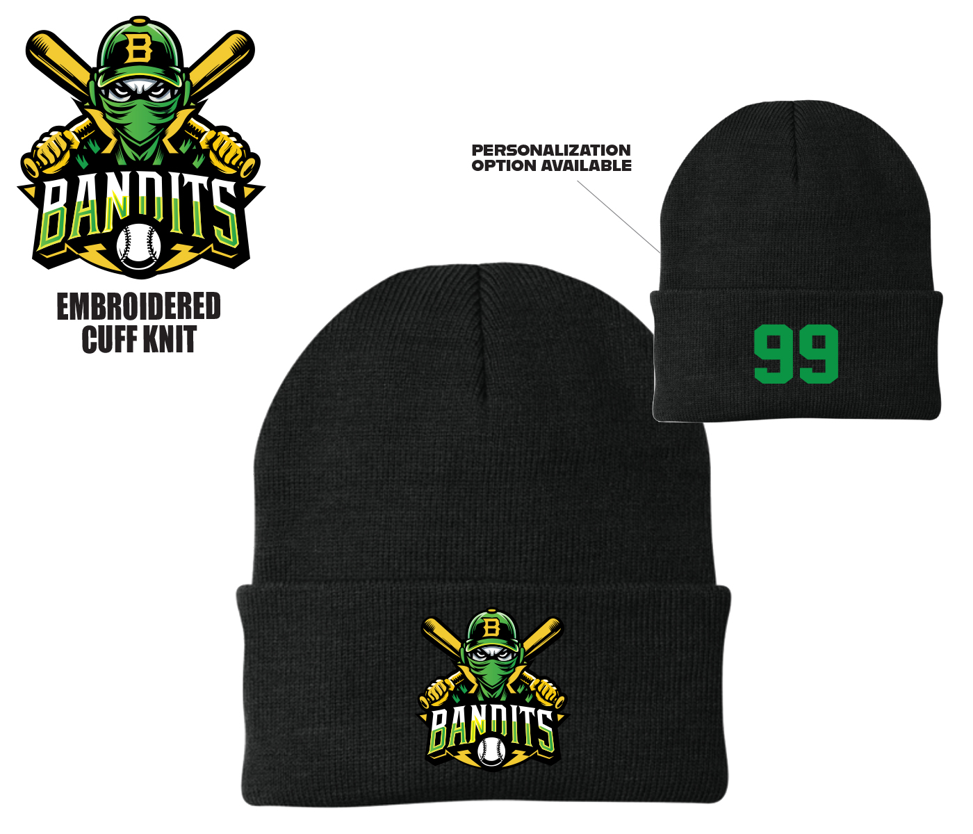 JPM LAWN & LANDSCAPEIntroducing the Brick Bandits Official Embroidered Cuff Knit made exclusively for the Bandit Membership by PACER. Produced to keep you warm during those cold days & nights. Features a Roll Up Cuff adorned with the Official Bandit Mascot Logo.