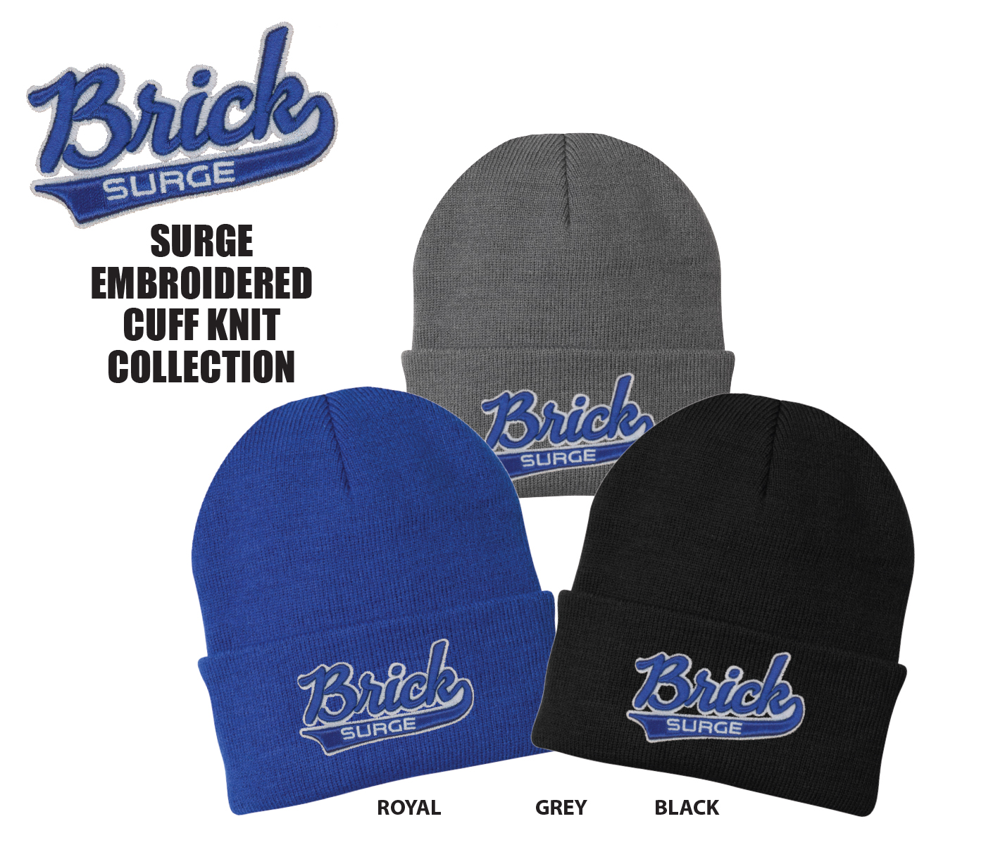 JPM LAWN & LANDSCAPEIntroducing the Brick Surge Official Embroidered Cuff Knit Collection made exclusively for the Surge Membership by PACER. Produced to keep you warm during those cold days & nights. Available in 3 Colorways w Roll Up Cuff adorned with the Official Brick Surge Wordmark Logo.