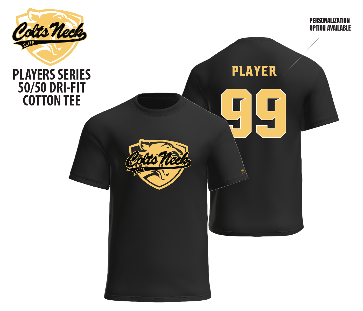 JPM LAWN & LANDSCAPEIntroducing the Colts Neck Elite Players DRI-FIT Cotton Tee Collection by PACER. Show support for your Favorite Player & Team by wearing one or more of these Unisex Shorts Sleeve 50/50 Cotton Tee's around town. Adorned with the Official Colts Neck Elite Mascot Logo on the Front Chest in a High Density Silicone Application.