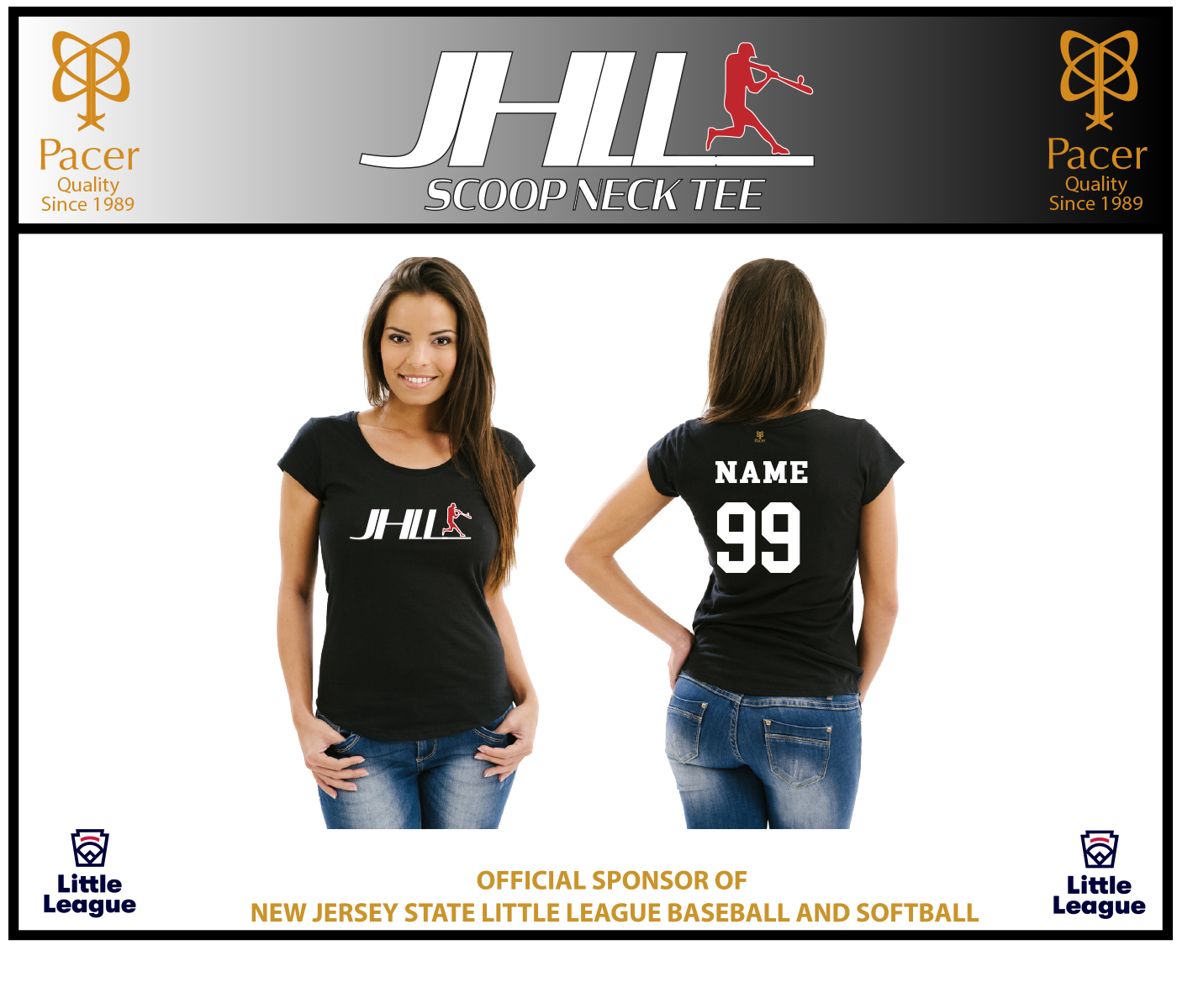 Introducing the Jackson Holbrook Little League Official Scoop Neck Tee. Made exclusive for the JHLL Membership for the by PACER. Show your support for your Favorite Player & Team by wearing one of these Lightweight Tee's around. Each comes with our Official JHLL Baseball & Softball Logo as worn by the Players on the field.