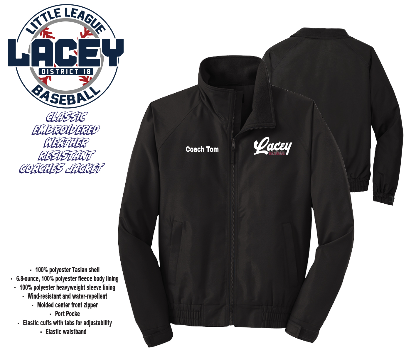 Introducing the LACEY LITTLE LEAGUE Weather Resistant Embroidered Coaches Jacket!