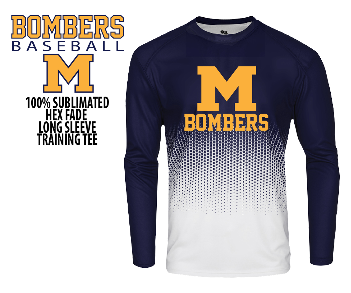 JPM LAWN & LANDSCAPEIntroducing the Manchester Bombers 100% Sublimated Hex Fade Long Sleeve Training Tee. Made exclusively for the Bombers Players & Family by PACER.Show your support for your Favorite Player & Team by wearing one or more of these Performance Long Sleeve Batting Practice Jerseys. Each comes with the Bombers "M" Logo Sublimated into the front Chest for a Lifetime of washes & wear.