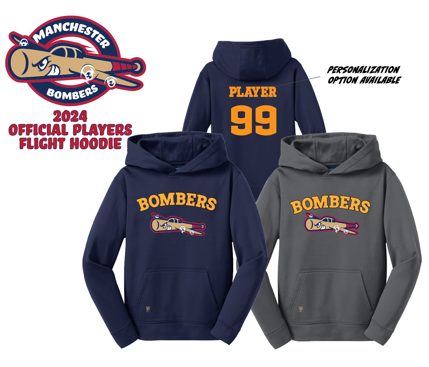 JPM LAWN & LANDSCAPEIntroducing the Manchester Bombers Player Flight Hoodie Collection. Made exclusively for the Bomber Players & Families by PACER.Show your support for your Favorite Player & Team by wearing one or more of these 9oz Ringspun Cotton PULL-OVER HOODIES which have an incredibly Soft and Relaxed unisex fit. Each comes with the NEW Official Bombers Flight Logo in a High Density Silicone Application.