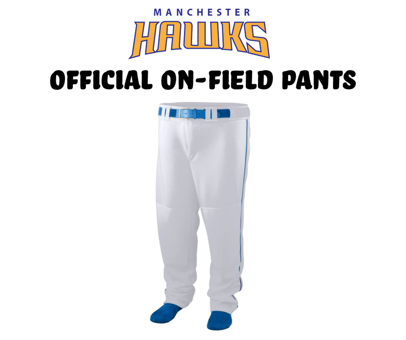 *BELT & SOCKS SOLD SEPARATELYPORTIONS OF THE PROCEEDS FROM THE SALE OF THESE ITEMS GO DIRECTLY TO HELP SUPPORT MANCHESTER HAWKS BASEBALL OPERATIONS.