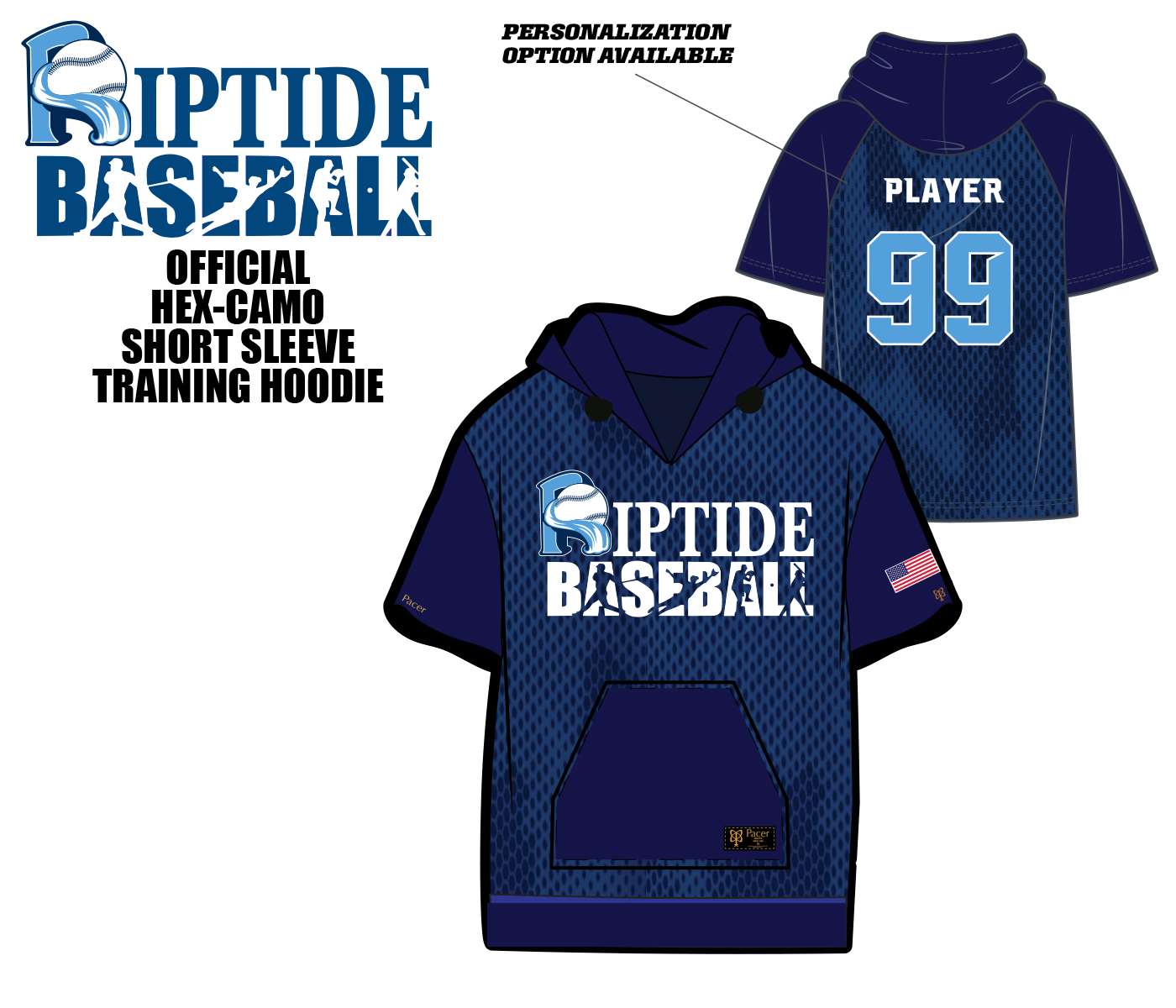 Introducing Riptide Baseball Official Hex-Camo Short Sleeve Performance Training Hood. Show your support for your favorite Player & Team by wearing this Performance Hooded Training Jersey on the field and around town. Offering elevated performance, softness and sustainability all in one. By combining simplicity with modern details, this Performance Hoodie provides true versatility for Coaches & Players with a super soft flex feel that moves with you throughout your day. Best of all, it's made from our Poly "P" Performance fabric. Produced Exclusively for the Riptide Membership by Pacer.