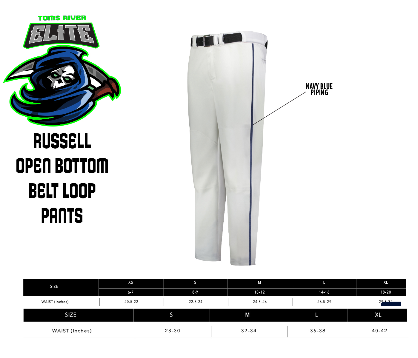 INTRODUCING THE OFFICIAL TOMS RIVER ELITE ON-FIELD PANTS by RUSSELL.