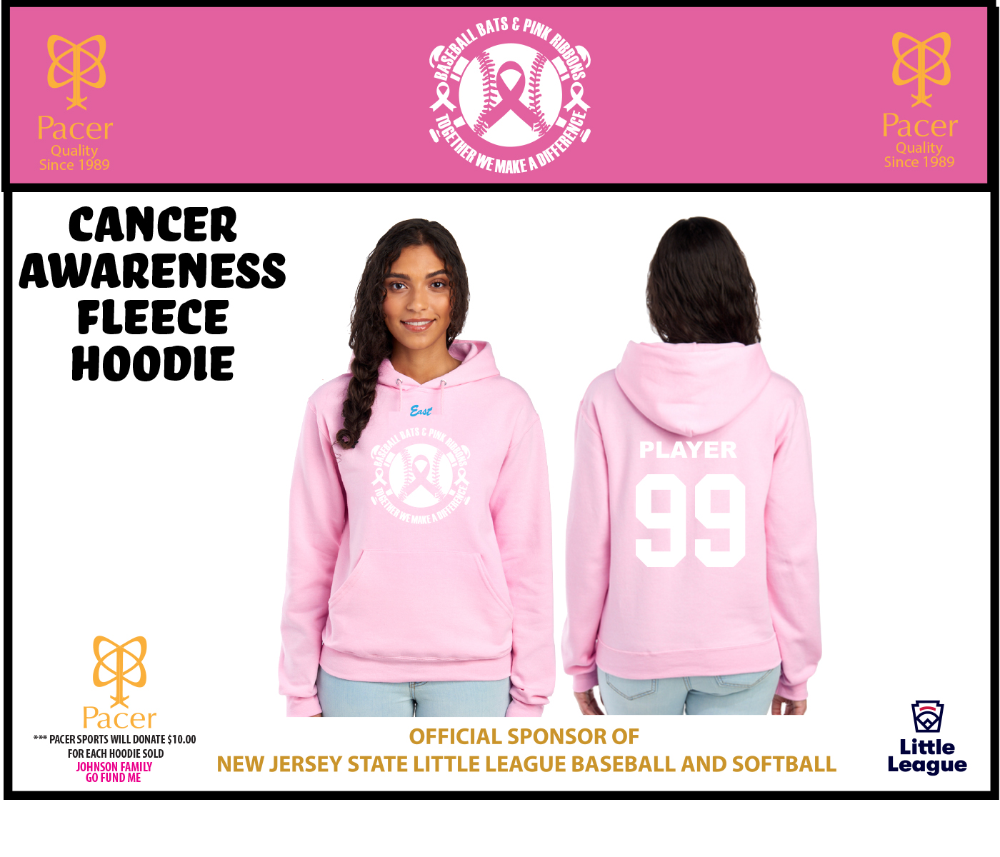 Introducing Toms River East Little League's Cancer Awareness Cotton Fleece Pull Over Hoodie for 2025. This years Hoodie strikes home as all donations will be going to one of our own families that have been hit hard by this disease. We will be donating $10 for each Hoodie sold directly to the Johnson Families Go Fund Me page with hopes that we can assist the family at this terrible time.